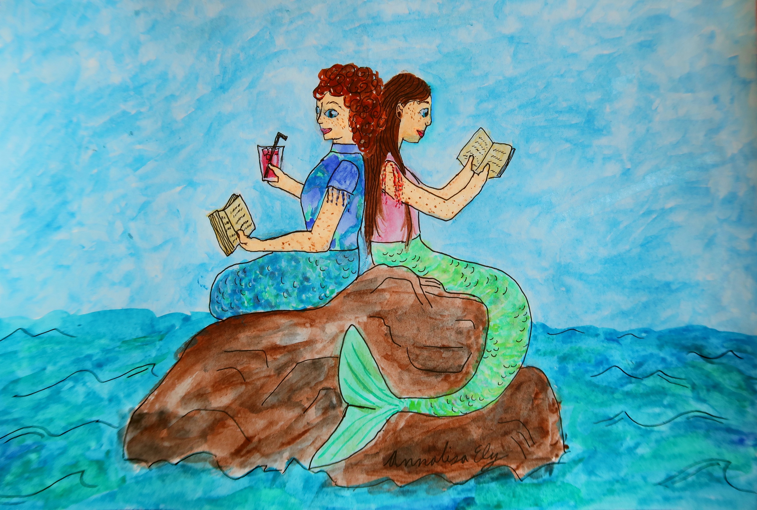 These mermaids love to read together in the sun - hence the freckles! 10"x8"