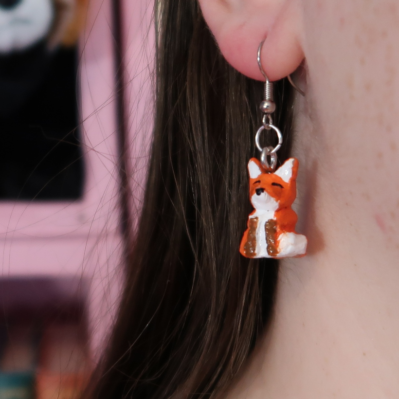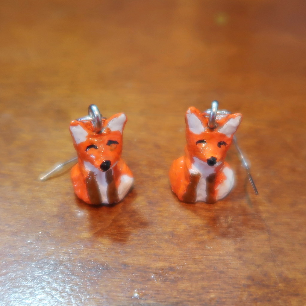 These earrings are hand molded with clay and then painted by hand. Each fox is about 1.5 cm tall.
