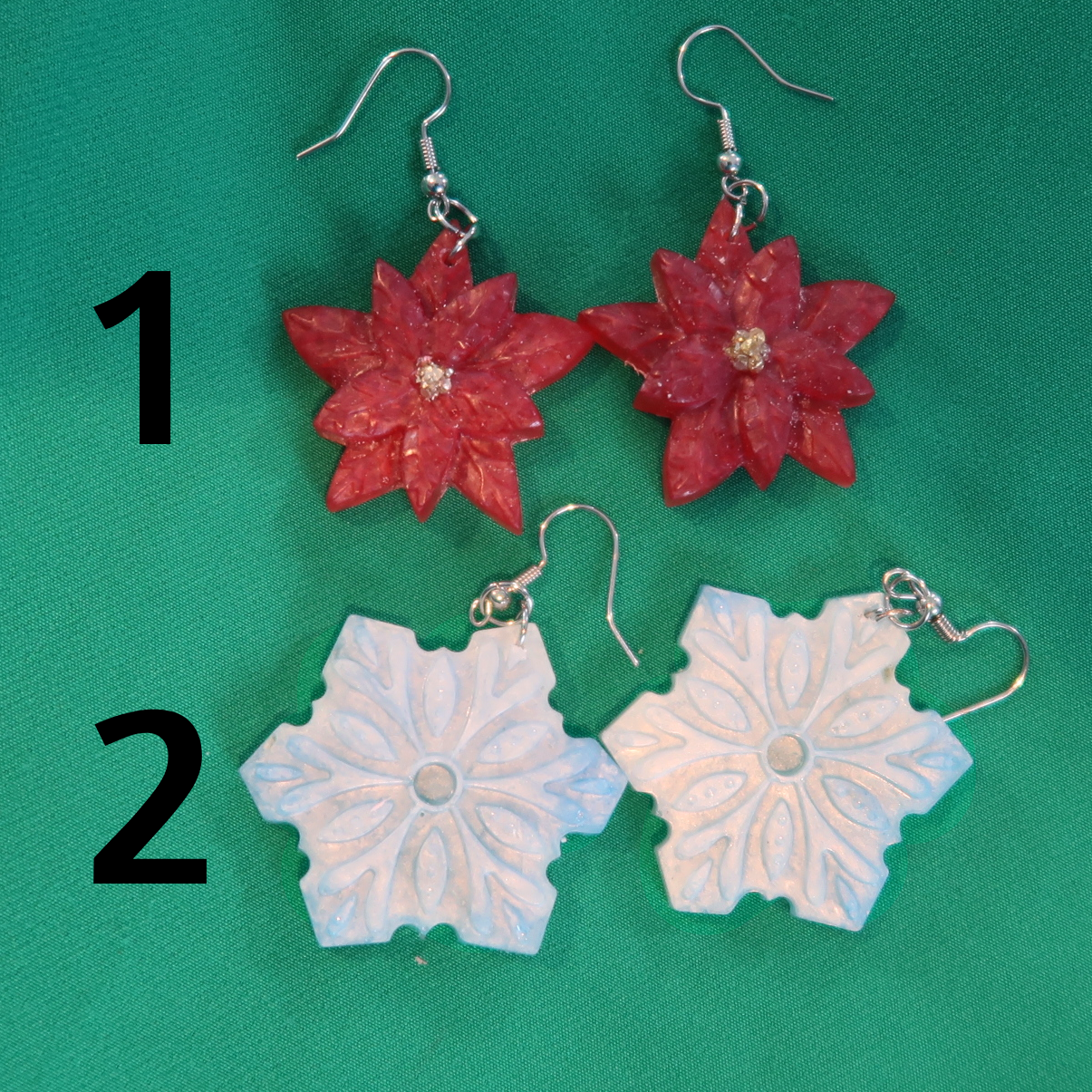 The resin for these earrings is mixed and poured by hand. Earring wire is nickel free. Pick which you would like.